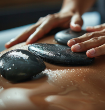 A hot stone massage is a therapy that uses heated basalt stones to relieve muscle tension, improve circulation, and promote deep relaxation.